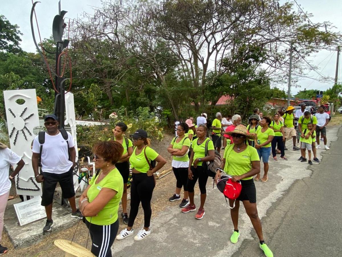 Au bout d’un effort soutenu sous la chaleur des terres volcaniques du Nord Caraïbe, les premières sonorités de tambour, ti-bwa, cha-cha et autres instruments se font entendre et portent littéralement nos marcheurs de Fond Canonville vers l’arrivée à Sainte-Philomène. Après avoir remercié le groupe Agissons pour Saint-Pierre pour son hospitalité, le leader de Martinique-Écologie a renouvelé son appel pour une concorde martiniquaise. Plus que jamais, au moment où Alfred Marie-Jeanne quitte la scène politique, il est donc nécessaire de créer les conditions d’un environnement favorable à la transmission générationnelle respectueuse des hommes et des organisations.