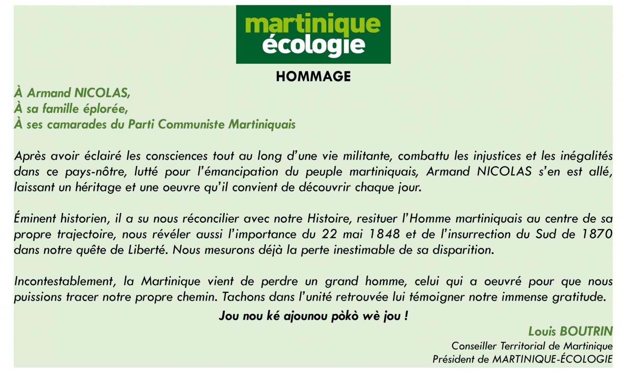 MARTINIQUE-ÉCOLOGIE REND HOMMAGE À ARMAND NICOLAS