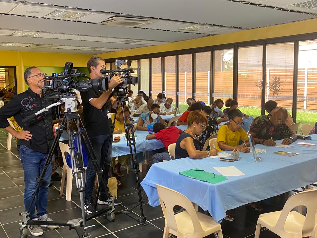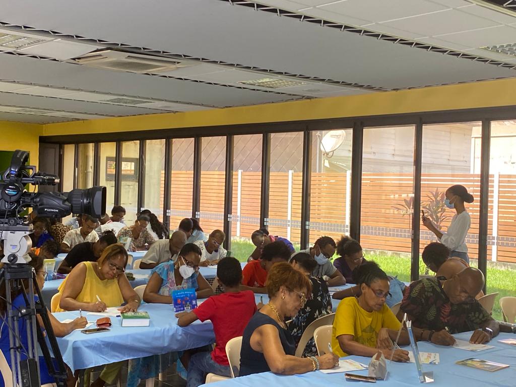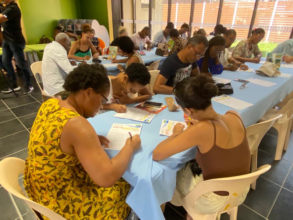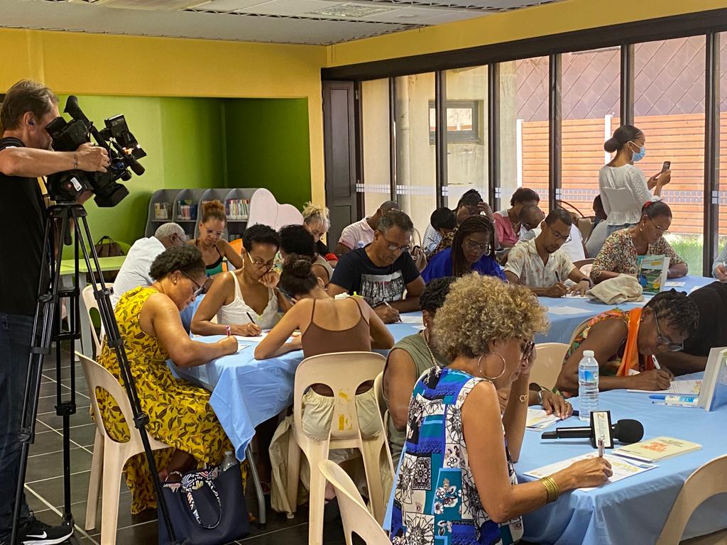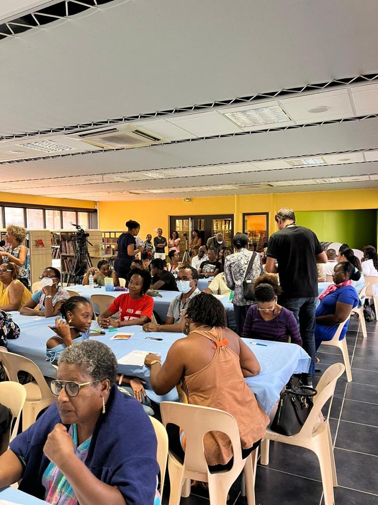 Samedi 15 octobre 2022. Médiathèque du Saint-Esprit. C’est sur un texte de Raphaël CONFIANT, Klima latè kay tounen difé lanfé, que les nombreux participants ont planché lors de la DIKTÉ KRÉYOL organisée par MARTINIQUE-ÉCOLOGIE en partenariat avec la Médiathèque et la Ville de SAINT-ESPRIT. Un thème d’actualité brulante qui vise à interpeller les consciences sur la nécessité d’un nouveau modèle de développement face aux impacts du réchauffement climatique sur la biodiversité et les populations de notre planète.