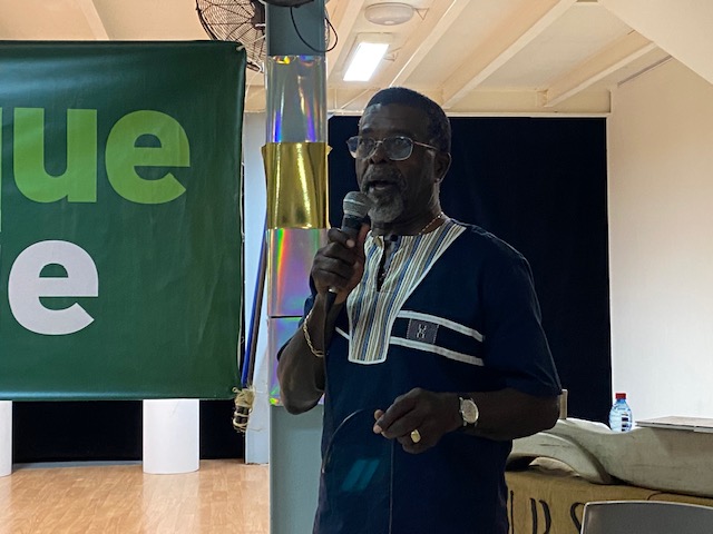 C’est à Raphaël Confiant qu’il revint le privilège de clore la première partie du Forum-Citoyen. Rompu à ce type d’exercice, l’écrivain martiniquais exposa avec humour sa rencontre avec Zobel lors du « Prix du livre insulaire » à l’île d’Ouessant. (R. Confiant fut lauréat de ce Prix en 2011 – Catégorie Polar pour « Citoyen au-dessus de tout soupçon »). La tonalité de leurs brefs échanges, la posture de Zobel et la puissance qui se dégageait de ce grand nègre en costume blanc lors de citations des fables de Jean de Lafontaine impressionnèrent le jeune romancier des années 80. Puis, l’auteur du Commandeur du Sucre (Editions Ecriture) relata toutes les étapes de ce roman depuis ses entretiens avec M. Pacquit responsable de plantation sur l’Habitation Trénelle jusqu’aux nombreuses anecdotes qui jalonnent un des meilleurs romans contemporains sur cette période faste de l’industrie sucrière.
