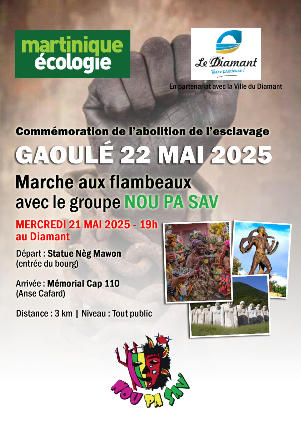 Départ : Statue Nèg Mawon (entrée du bourg) Arrivée : Mémorial Cap 110 (Anse Cafard)