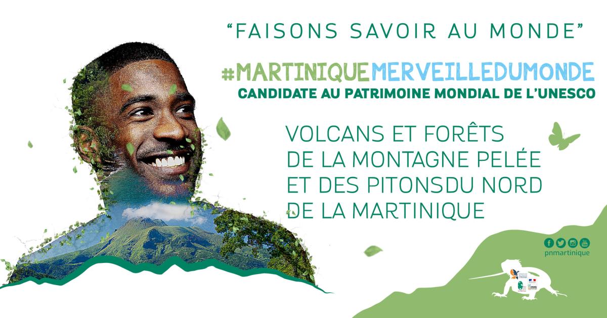 Du 24 au 28 Septembre 2018, le Parc Naturel de Martinique (PNM), porteur du projet pour le compte de l’État et de la Collectivité Territoriale de Martinique, organise une semaine de sensibilisation afin d’informer le plus grand nombre, de la candidature pour l'inscription au patrimoine mondial de l'UNESCO des "Volcans et Forêts de la montagne pelée et des pitons du nord de la Martinique“. Au cours de cette semaine, plusieurs rencontres de coopérations régionales seront également organisées sur le territoire.