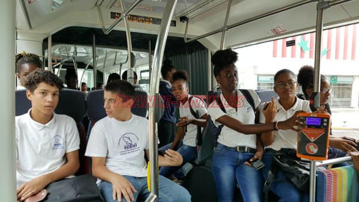 Les élèves de 3e du collège Cassien Sainte-Claire, à Fort-de-France, sont montés à bord du TCSP ce mardi matin. Un parcours d'une heure entre Mahault et Almadies Bô Kannal. Ambiance à bord en images.