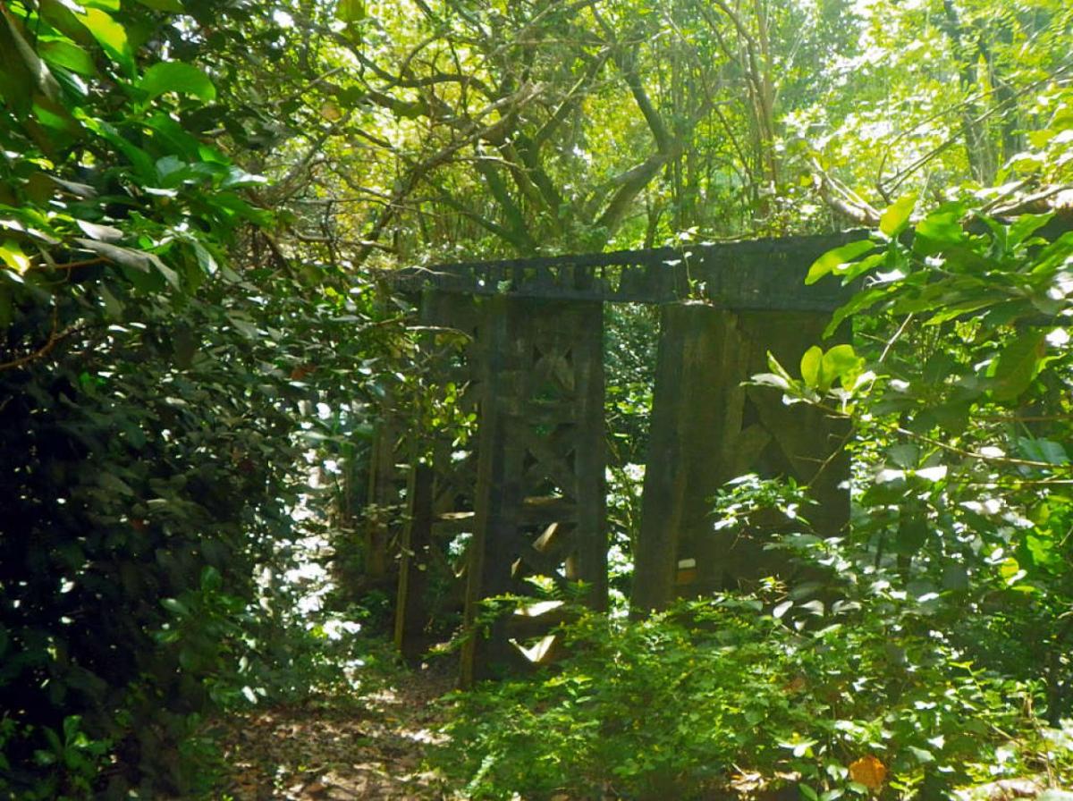 Les vestiges d'un viaduc d'une voie ferrée qui jalonnent le parcours témoignent d'une activité sucrière passée. La Crabière est une des plus belles rando du Nord Atlantique. Arrivée à Vivé sur l'Habitation La Capot après avoir traversé la Rivière Rouge