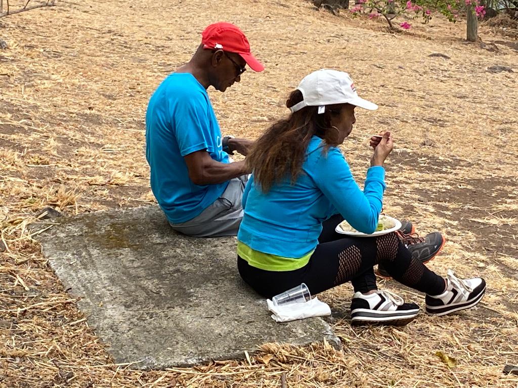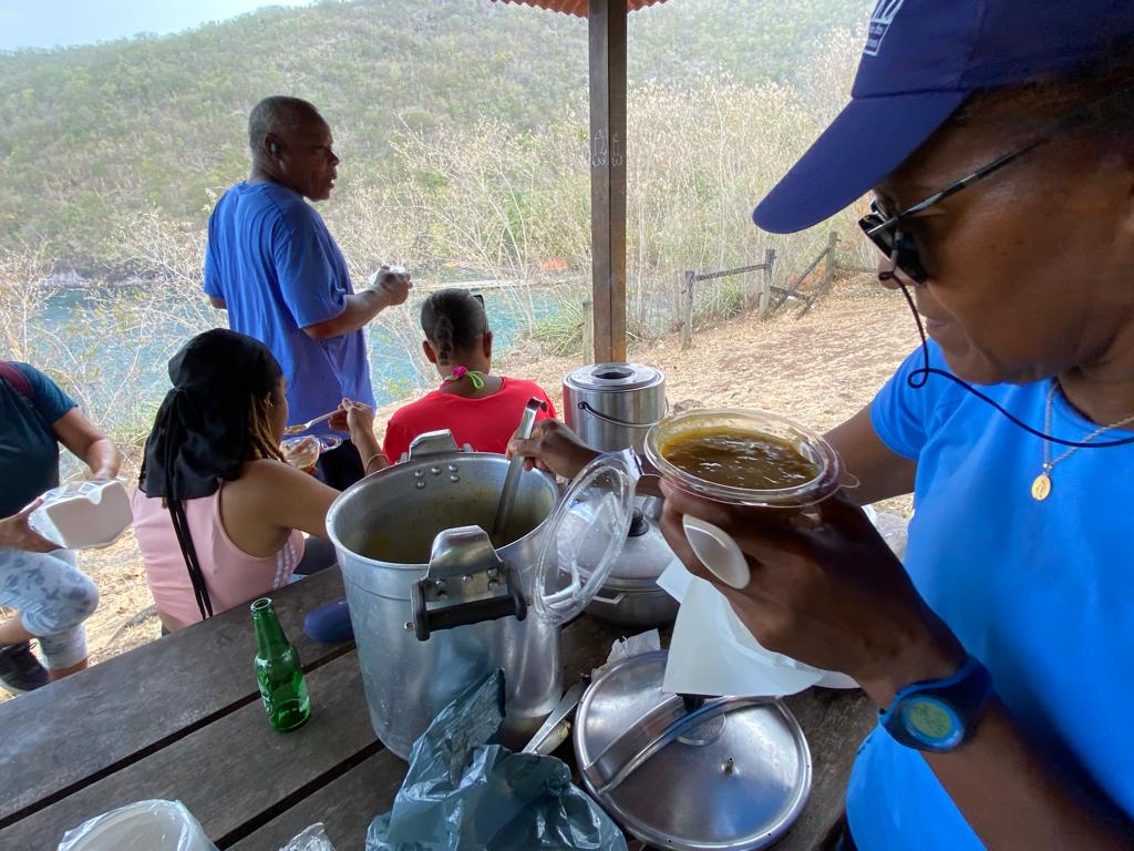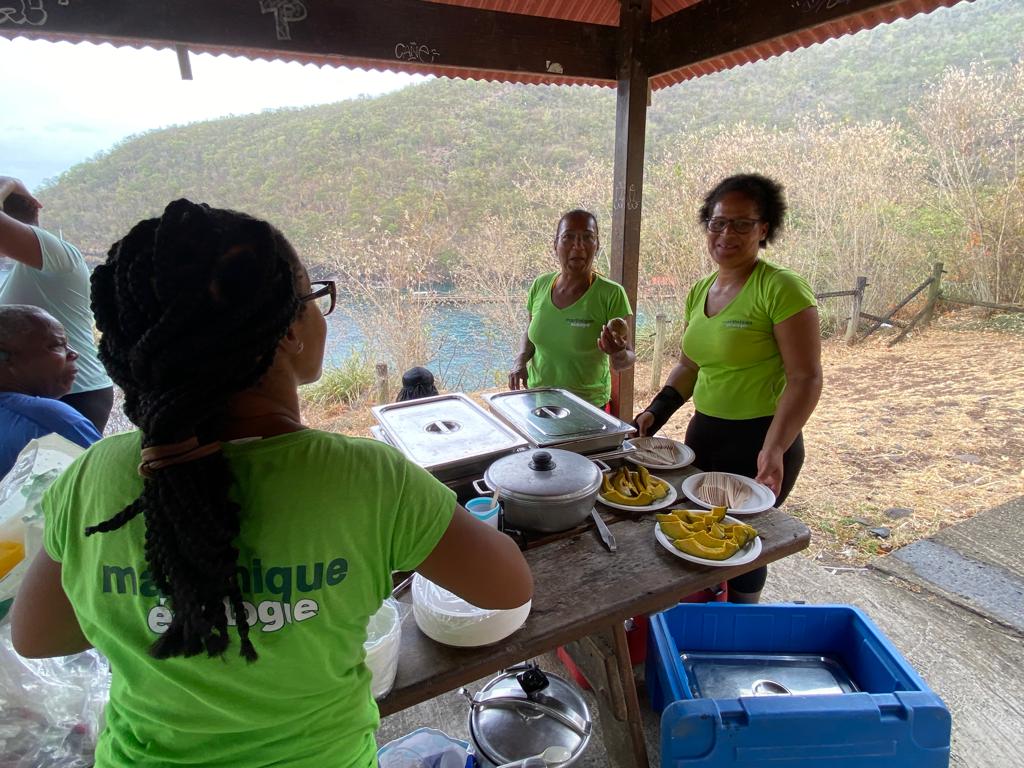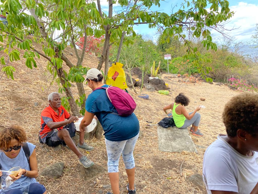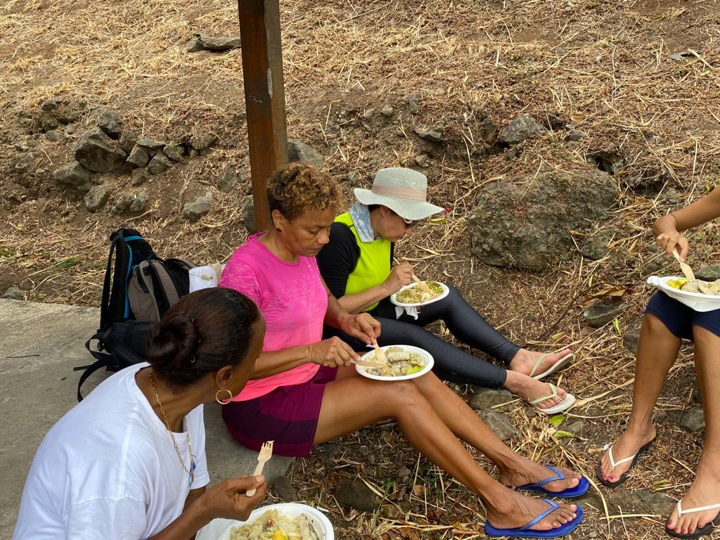 Passés ces moments d’effort, c’est autour d’une délicieuse soupe de poisson et d’un Ti-nain morue, préparés par « les Diamantinois », que nos randonneurs se sont retrouvés sous une Joupa qui surplombe l’Anse noire. Histoire de clôturer cette matinée conviviale d’avril 2022, de se remémorer les précédentes randos et de se projeter dans nos rendez-vous à venir.