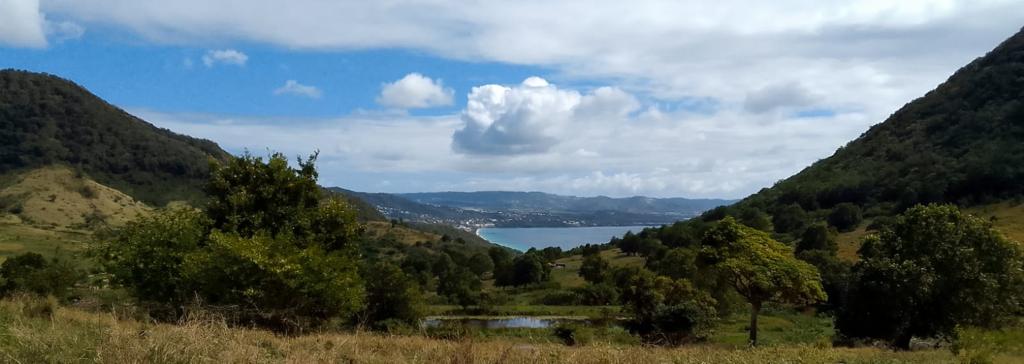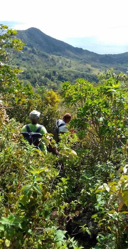 Dès notre descente en voiture vers le pittoresque village de pêcheurs de Petite-Anse, nous apercevons avec curiosité le Morne Genty, objet de notre escapade dominicale qui s’érige en face de nous, tout en haut, tel un piton aux versants abrupts érigé majestueusement entre le Morne Clochette et le mythique Morne Larcher.