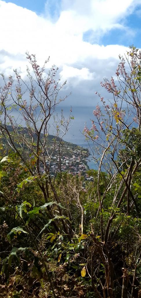 Et c’est à cet instant précis, perché sur un bloc d’andésite, que l’on vient à regretter la belle époque où l’on pouvait profiter de cette situation exceptionnelle pour découvrir l’autre versant du Morne Genty avec une vue imprenable sur le bourg des Anses d’Arlet, le Morne Champagne, Grande Anse, le Morne Baguidi, le Cap Salomon, la baie de Fort-de-France, les Pitons du Carbet et plus au loin, la Montagne Pelée. Un cadre distant qui mériterait d’être mis en valeur par l’ONF à travers une politique d’entretien régulier du site envahi malheureusement par les broussailles et autres espèces boisées. Quelques mètres en contrebas, on peut apercevoir dans toute sa splendeur le village de Petite-Anse et son port de pêche fouetté par la brise et le ressac de la mer.