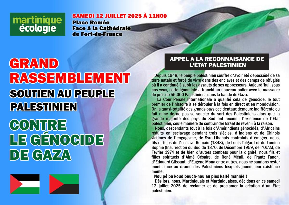 Dès lors, nous, Martiniquais et Martiniquaises, décidons en ce samedi 12 juillet 2025 de réclamer et de proclamer la création d'un État palestinien.