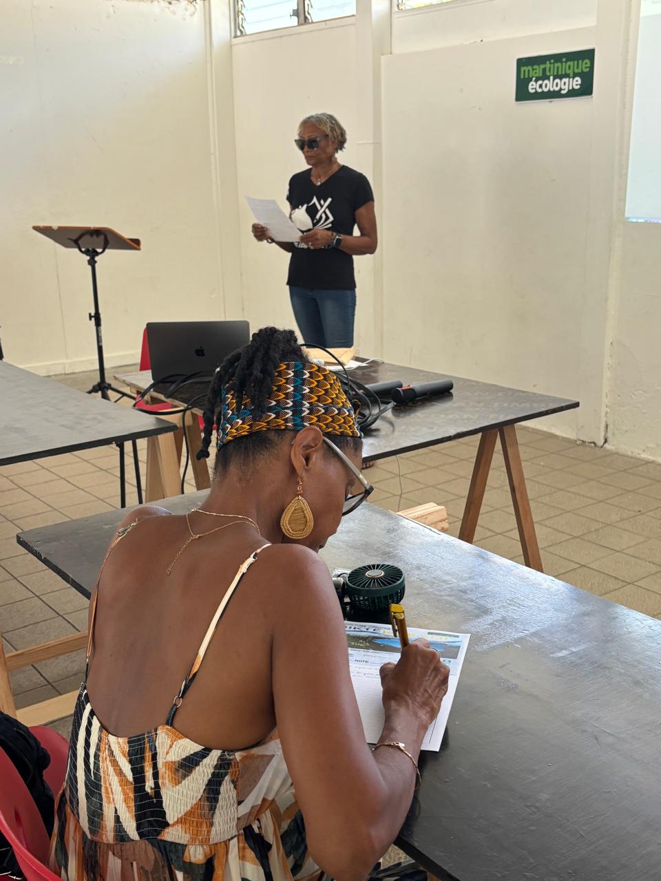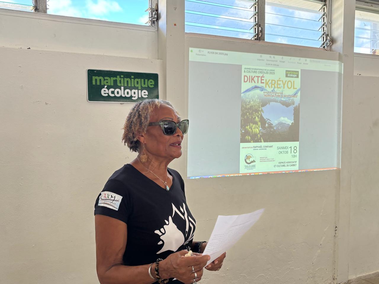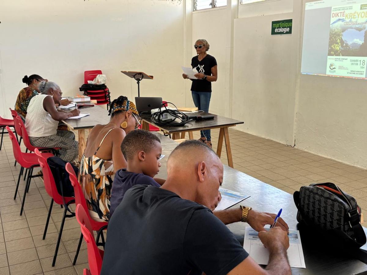 Karbet - EAC Bòd Lanmè – Sanmdi 18 oktob 2025. 10è bonmaten. « Komin Karbé sé yonn adan pli bel koté ki ni Matinik ». C’est par ces mots laudateurs de l’écrivain Raphaël Confiant que les participants ont planché sur la dikté kréyol 2025 organisée par Martinique-Écologie en partenariat avec la Ville du Carbet (Remerciements). Un texte très inspirant, empli de nuances et d’images évocatrices, qui a tenu en haleine les auditeurs d’un jour au moment même où la commune enterrait Christian Frédal, Carbétien dans l’âme, un homme d’une grande générosité dont la disparition a précipité bon nombre de concitoyens à sa cérémonie funéraire (RIP - Condoléances à la famille).