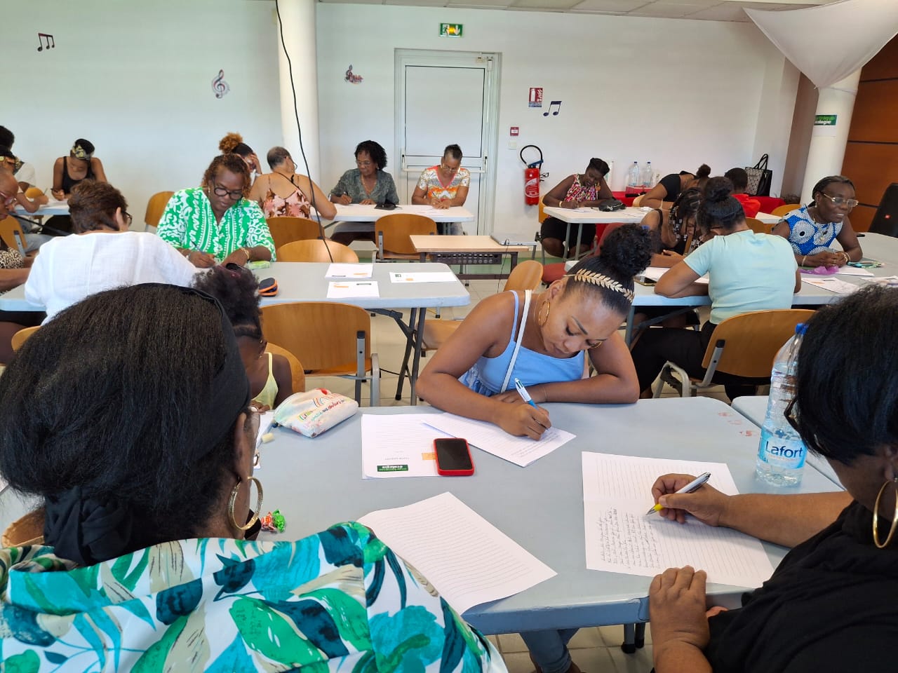 Fidèle à ses engagements en faveur de l’environnement et en première ligne dans le combat contre l’empoisonnement au Chlordécone, Martinique-Écologie a proposé un texte d’actualité brûlante rédigé par l’écrivain et universitaire Raphaël Confiant sur le thème « Agrikilti ek Pestisid ». Une occasion supplémentaire d’enrichir notre langue menacée par une francisation galopante que seul l’écrit pour contrecarrer. Dans le droit fil des travaux du GEREC pour une graphie du créole, Jane Étienne a fait preuve de pédagogie répondant à l’enthousiasme et aux nombreuses questions des participants. Entre exposé sur les origines du créole et tableau à l’appui, cette enseignante d’origine Kalinago a suscité des échanges fructueux où elle a distillé des règles grammaticales et de syntaxe pour le bonheur de tous. Dans l’attente de la correction des copies, Béatrice Joseph et Bruno Dubréas ont assuré une animation improvisée à travers la lecture de poèmes et des chants de notre répertoire créole.